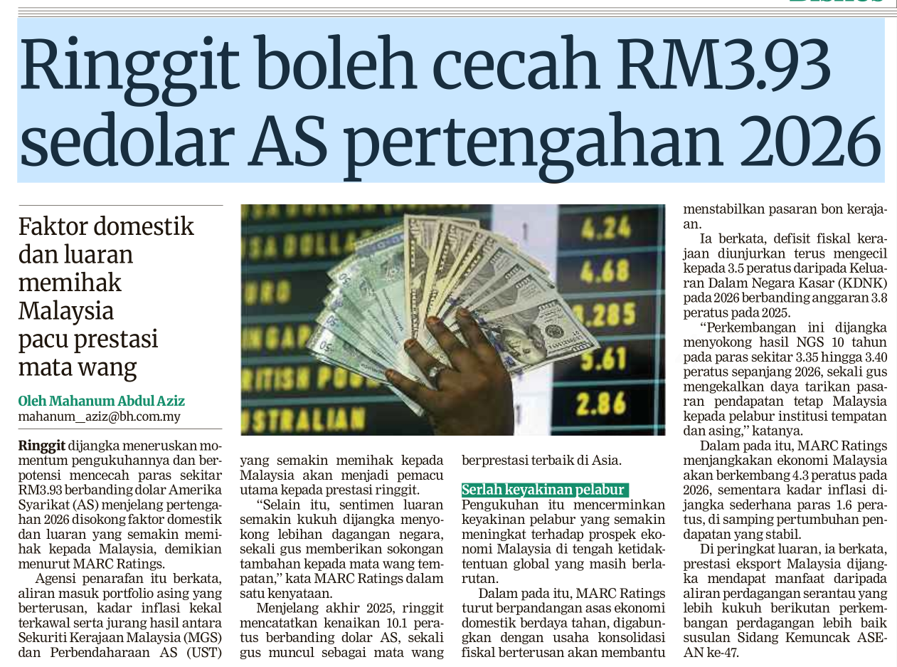 Mahanum Abdul Aziz (2026) Ringgit Boleh Cecah RM3.93 Sedolar AS Pertengahan 2026. Berita Harian. |