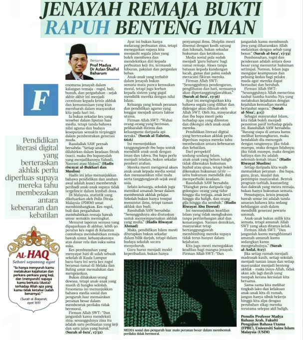 Prof. Madya Dr. Azlan Shaiful Baharum (2025) Jenayah remaja bukti rapuh benteng iman. Harian Metro. |