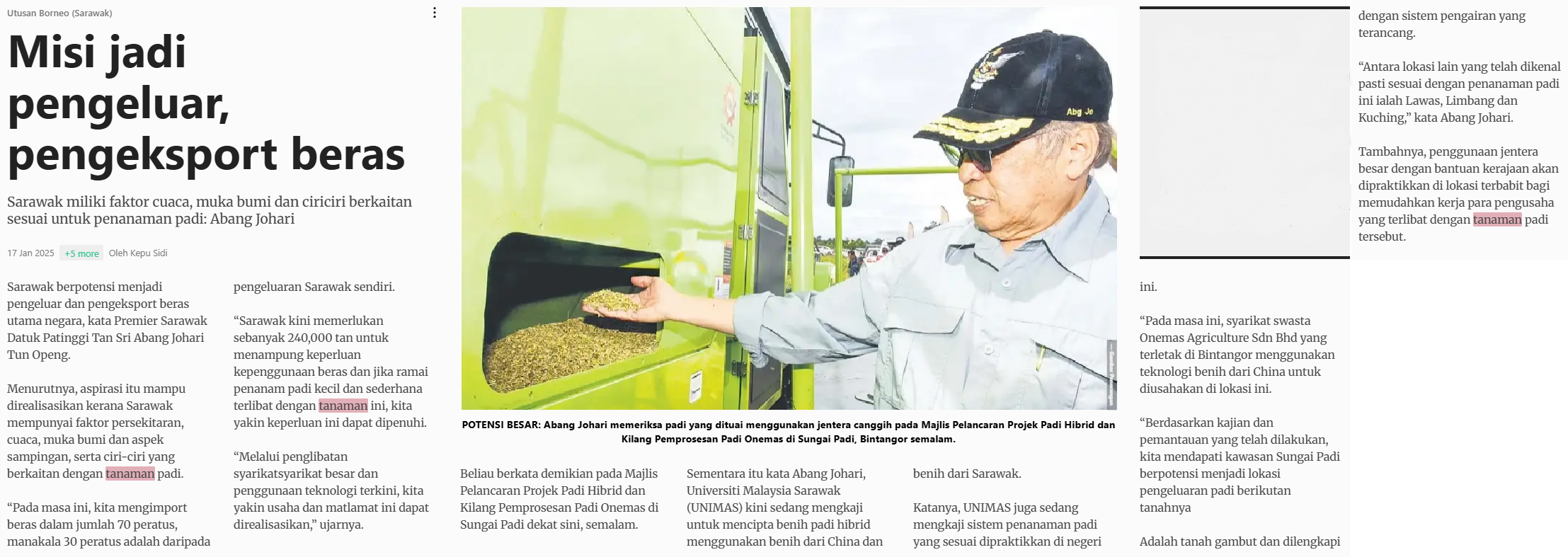 Kepu Sidi (2025) Misi jadi pengeluar, pengeksport beras. Utusan Borneo (Sarawak). |