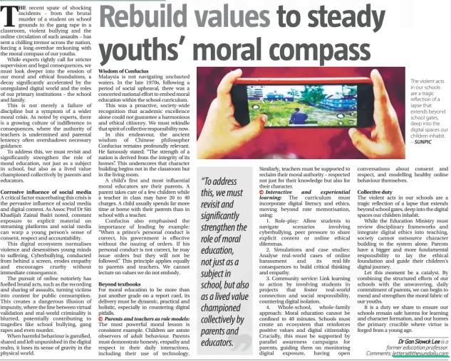 Dr. Gan Siowck Lee (2025) Rebuild values to steady youths' moral compass. The Sun (Malaysia). |