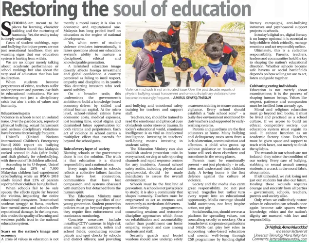 Dr. Hafirda Akma Musaddad (2025) Restoring the soul of education. The Sun (Malaysia). |