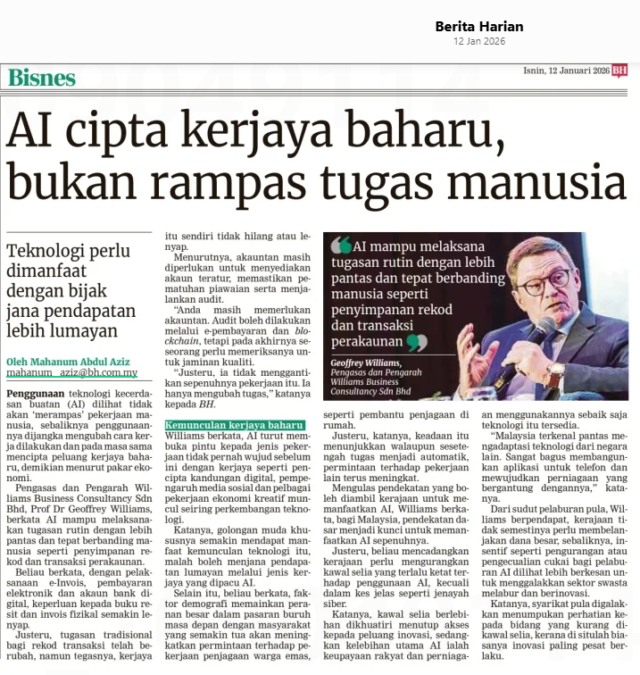 Mahanum Abdul Aziz (2026) AI cipta kerjaya baharu, bukan rampas tugas manusia. Berita Harian. |