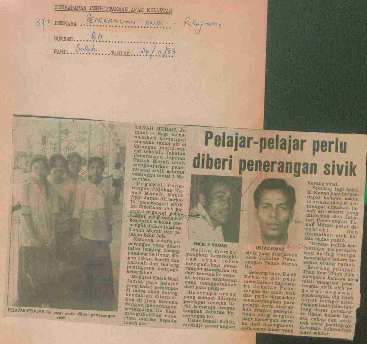 Berita Harian (1983) Pelajar-pelajar perlu diberi penerangan sivik. Berita Harian. |