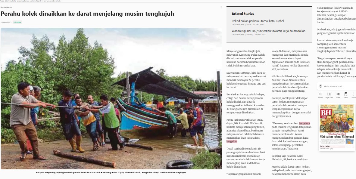 Bernama (2025) Perahu Kolek Dinaikkan Ke Darat Menjelang Musim Tengkujuh. Berita Harian. |