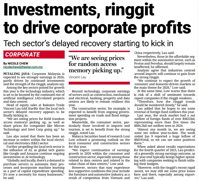 Nicole Chew (2026) Investments, ringgit to drive corporate profits. The Star. |