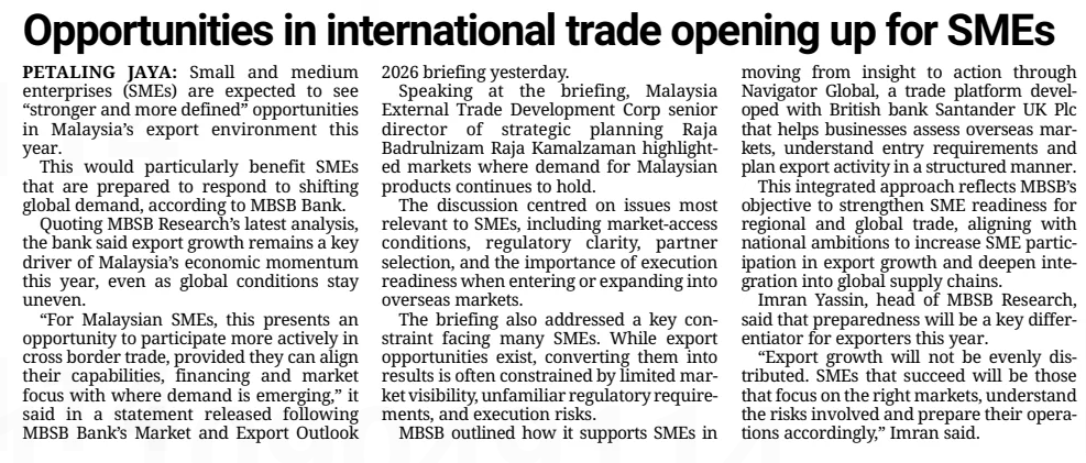 Nicole Chew (2026) Opportunities in International Trade Opening Up For SMES. The Star. |