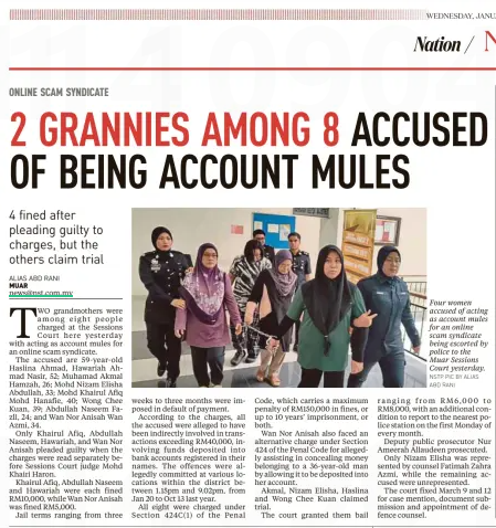 Alias Abdul Rani (2026) 2 grannies among 8 accused of being account mules. New Straits Times. |