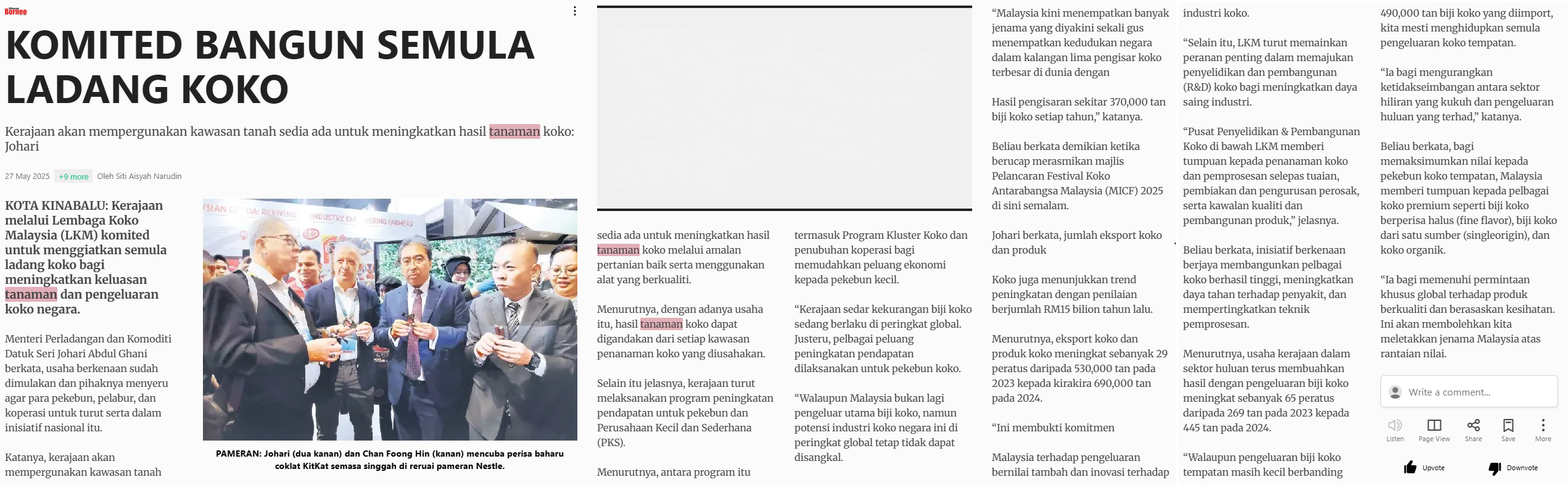 Siti Aisyah Narudin (2025) Komited bangun semula ladang koko. Utusan Borneo (Sabah). |