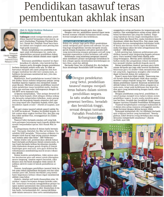 Dr. Mohd Mokhtar Muhamad (2025) Pendidikan tasawuf teras pembentukan akhlak insan. Berita Harian. |