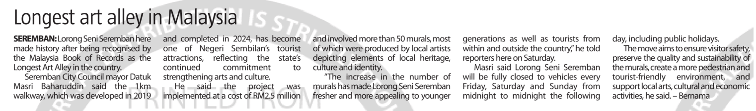 Bernama (2025) Longest art alley in Malaysia. The Sun Malaysia. |