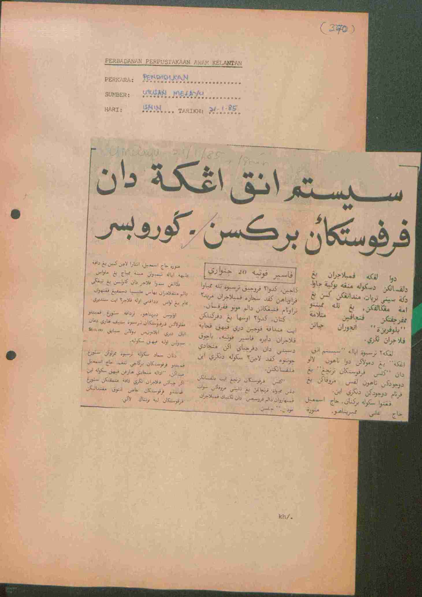 Utusan Melayu (1985) Sistem anak angkat dan perpustakaan berkesan - Guru besar. Berita Harian. |