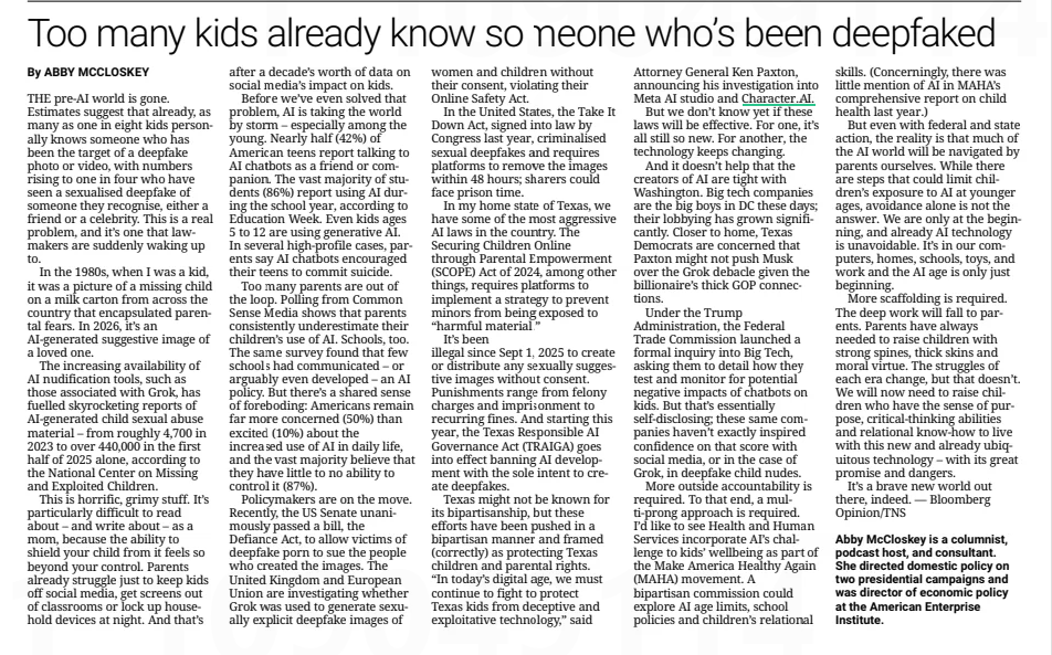 Mccloskey, Abby (2026) Too many kids already know someone who's been deepfaked. The Star. |