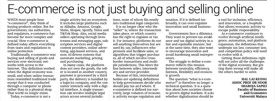 Keong, Hal Lai and Noor Sharoja Sapiei (2026) E-commerce is not just buying and selling online. The Star. |