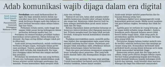 Syed Azman Syed Ismail (2025) Adab komunikasi wajib dijaga dalam era digital. Berita Harian. |