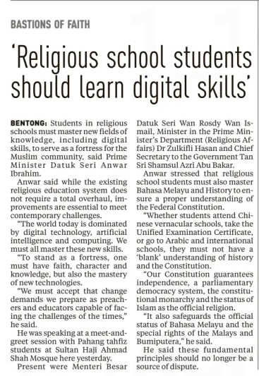 Bernama (2026) Religious school students should learn digital skills. New Straits Times. |