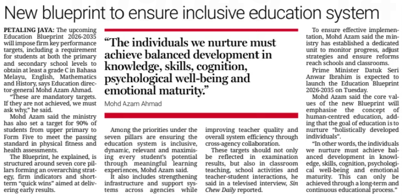 Mohd Azam Ahmad (2026) New blueprint to ensure inclusive education system. The Star. |