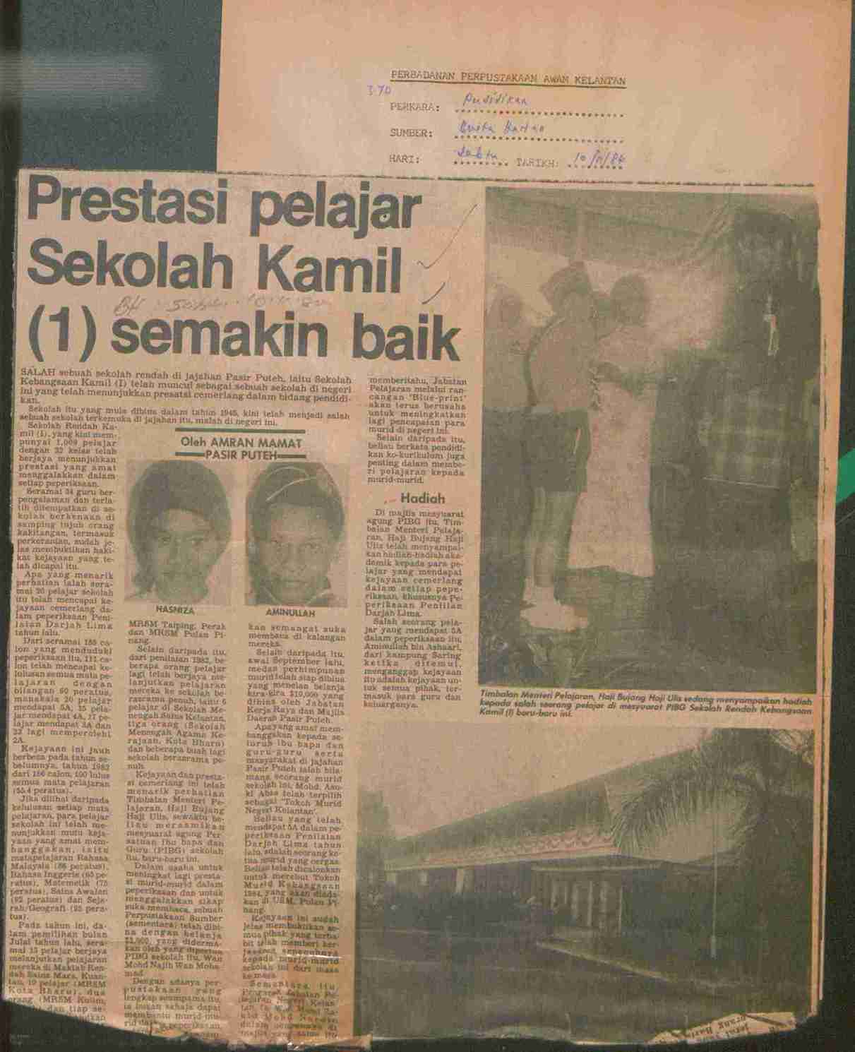 Berita Harian (1984) Prestasi pelajar Sekolah Kamil (1) semakin baik. Berita Harian. |