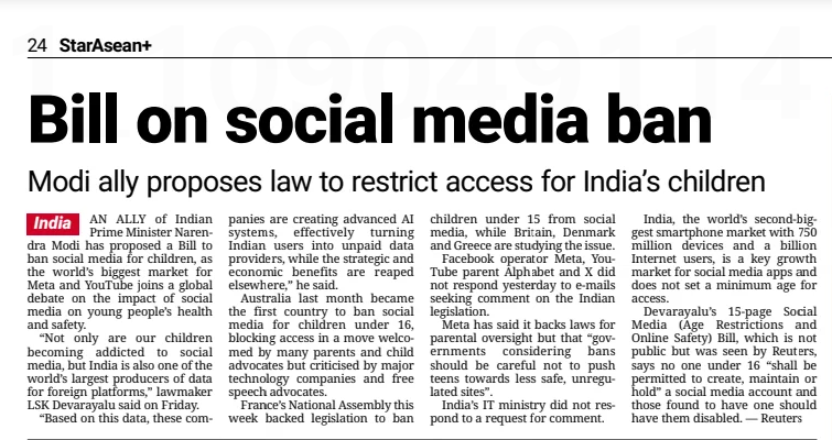 Bernama (2026) Bill on social media ban. The Star. |