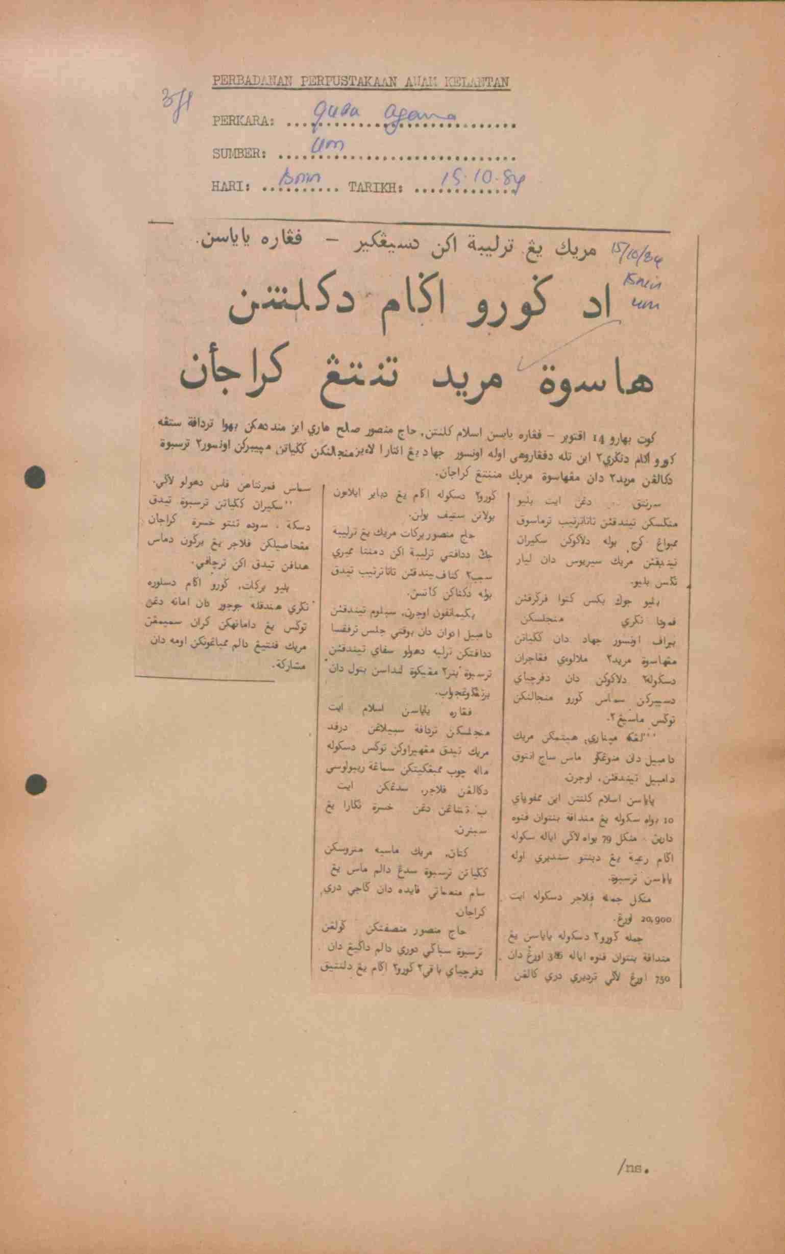 Utusan Malaysia (1984) Ada guru agama di Kelantan hasut murid tentang kerajaan. Utusan Malaysia. |