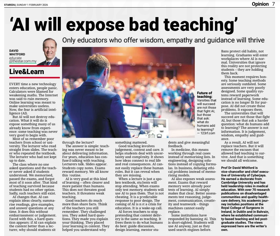 Whitford, Prof Dr David (2026) AI will expose bad teaching. The Star. |