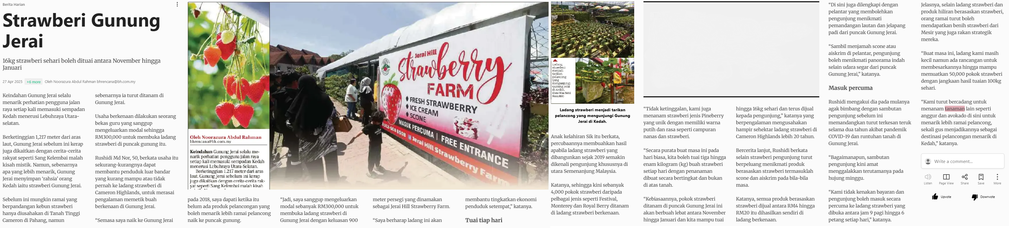 Noorazura Abdul Rahman (2025) Strawberi Gunung Jerai. Berita Harian. |