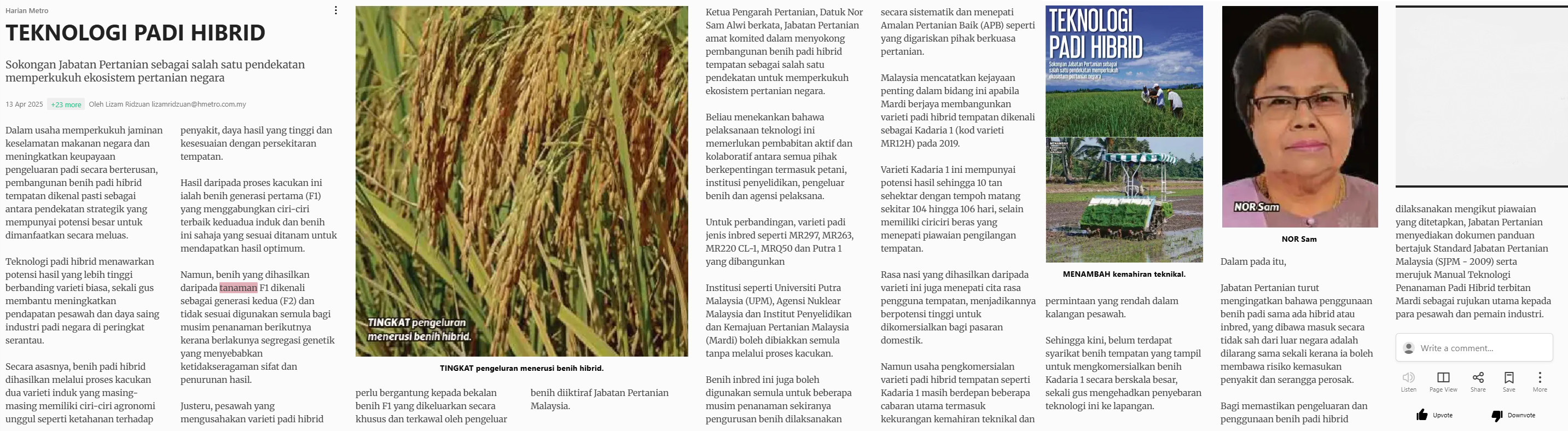 Lizam Ridzuan (2025) Teknologi padi hybrid. Harian Metro. |