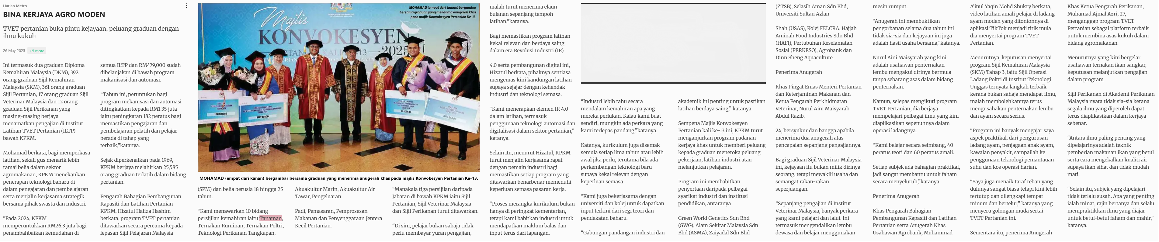 Harian Metro (2025) Bina kerjaya agro moden. Harian Metro. |