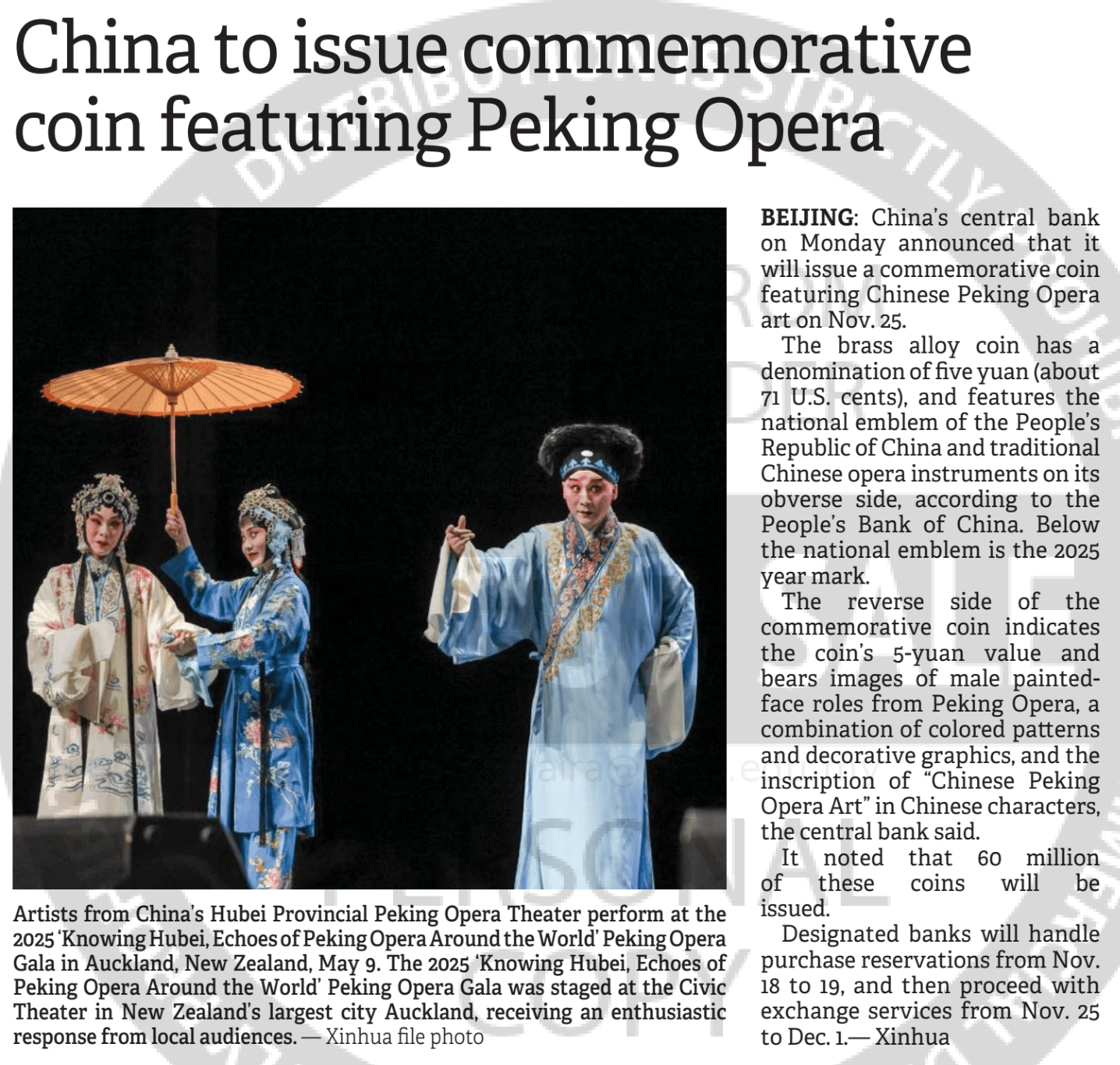 Xinhua (2025) China to issue commemorative coin featuring Peking Opera. The Borneo Post Sabah. |