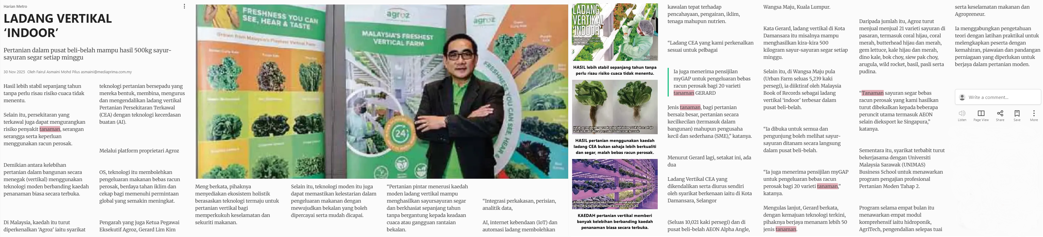 Fairul Asmaini Mohd Pilus (2025) Ladang vertikal 'indoor'. Harian Metro. |
