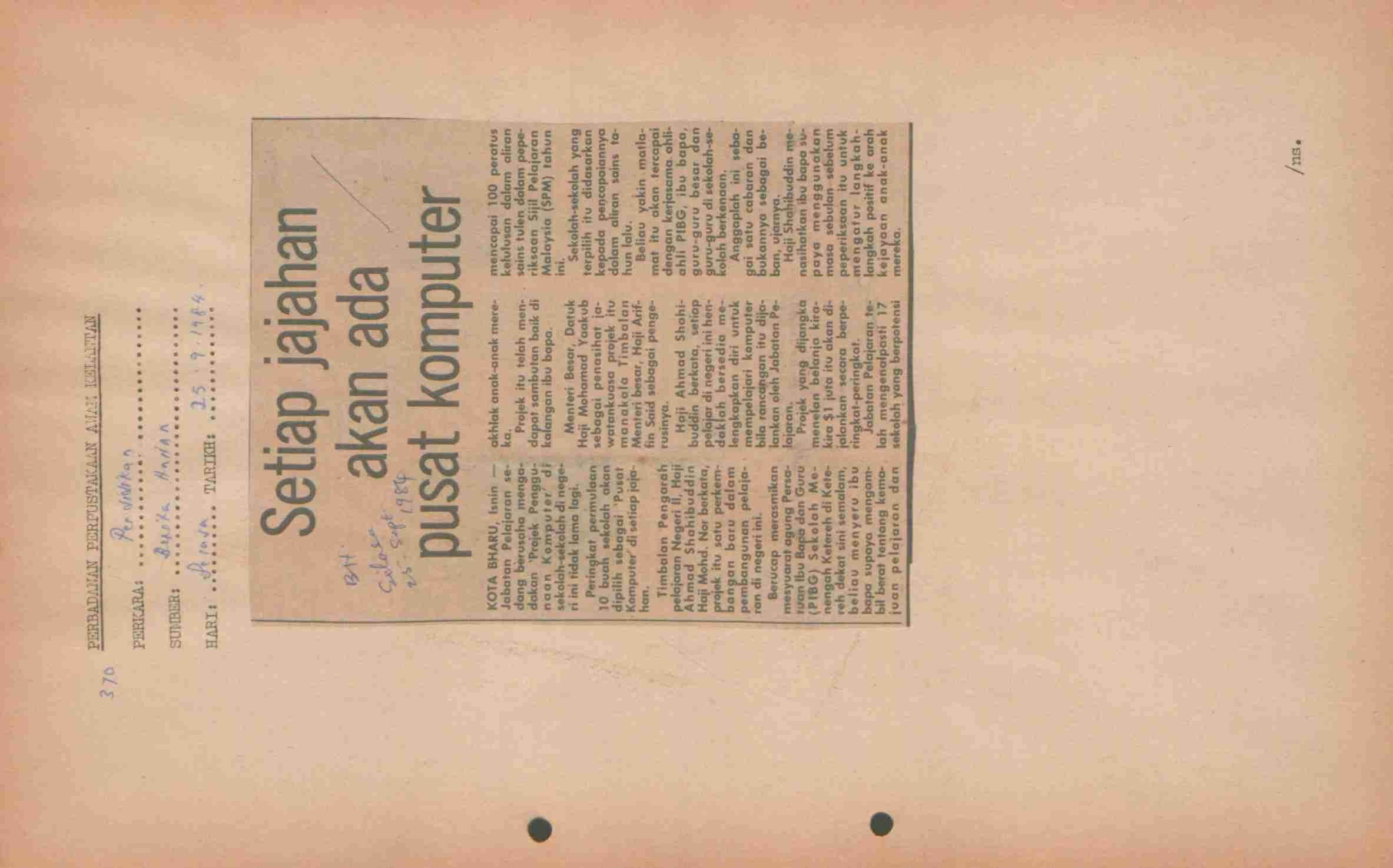 Berita Harian (1984) Setiap jajahan akan ada pusat komputer. Berita Harian. |