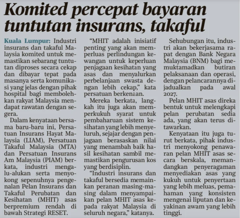 Bernama (2026) Komited percepat bayaran tuntutan insurans, takaful. Harian Metro. |