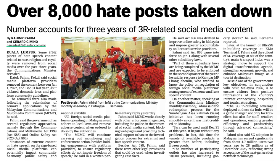 Rahimy Rahim and Gerard Gimino (2026) Over 8,000 hate posts taken down. The Star. |