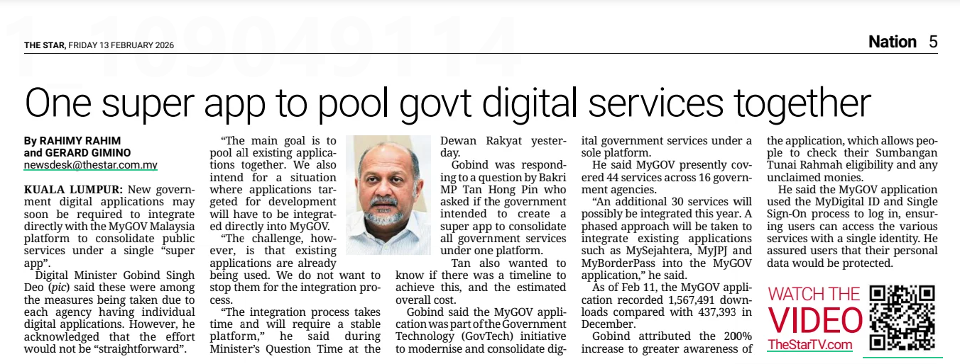 Rahimy Rahim and Gerard Gimino (2026) One super app to pool govt digital services together. The Star. |