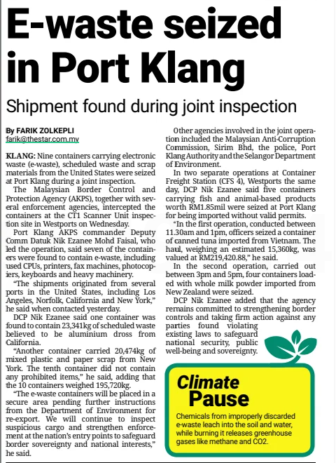 Farik Zolkepli (2026) E-waste seized in Port Klang. The Star. |