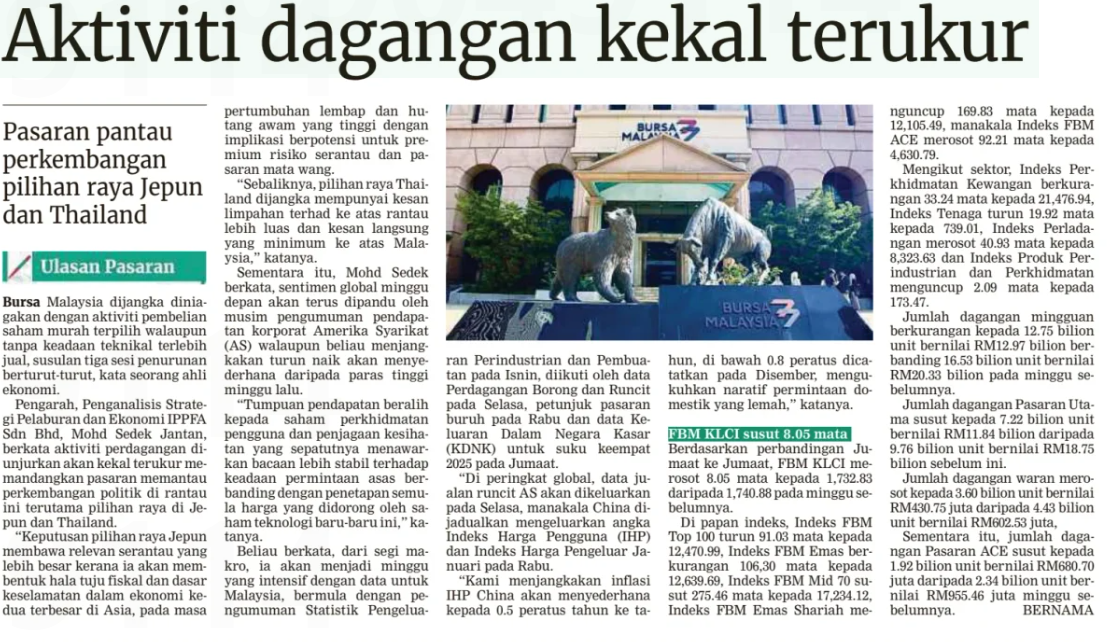 Bernama (2026) Aktiviti Dagangan Kekal Terukur, Pasaran Pantau Perkembangan Pilihan Raya Jepun dan Thailand. Berita Harian. |