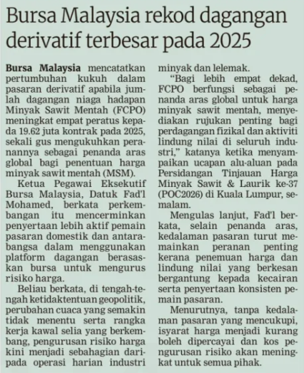 Hazwan Faisal Mohamad (2026) Bursa Malaysia Rekod Dagangan Derivatif Terbesar Pada 2025. Berita Harian. |