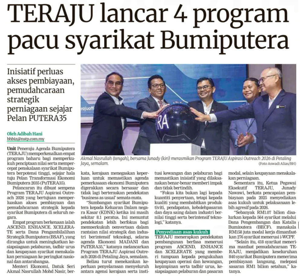 Adibah Hani (2026) Teraju Lancar 4 Program Pacu Syarikat Bumiputera. Berita Harian. |