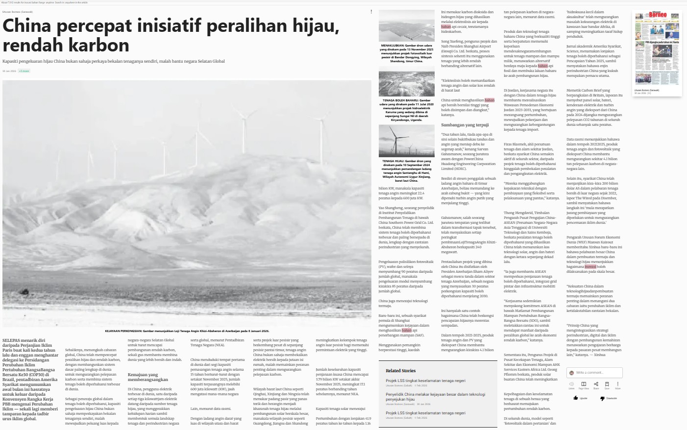 Bernama (2026) China percepat inisiatif peralihan hijau, rendah karbon. Utusan Borneo (Sarawak). |
