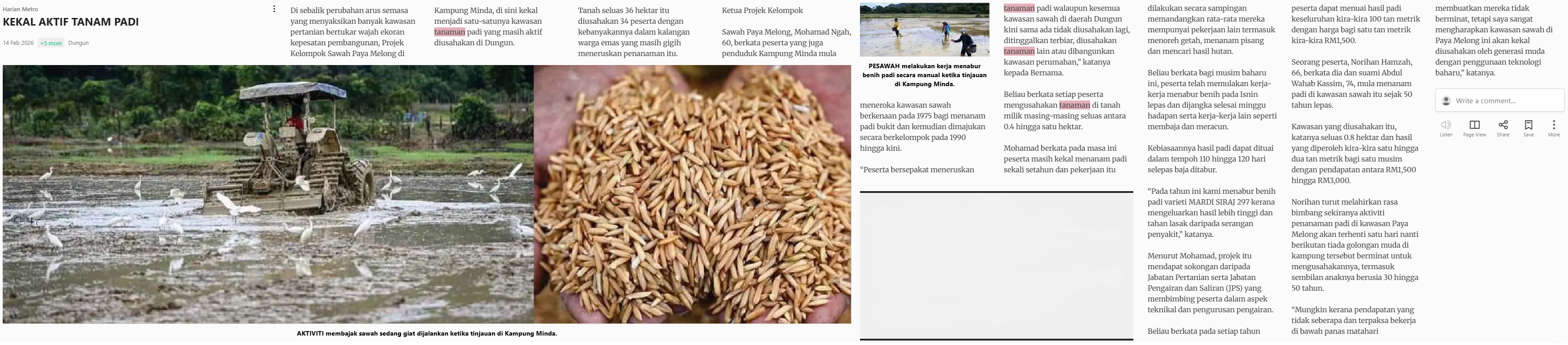 Harian Metro (2026) Kekal aktif tanam padi. Harian Metro. |