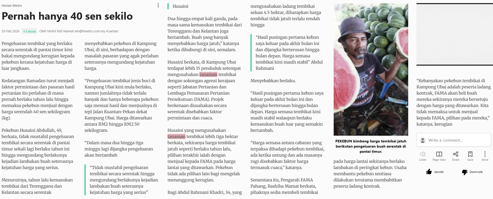 Mohd Rafi Mamat (2026) Pernah hanya 40 sen sekilo. Harian Metro. |