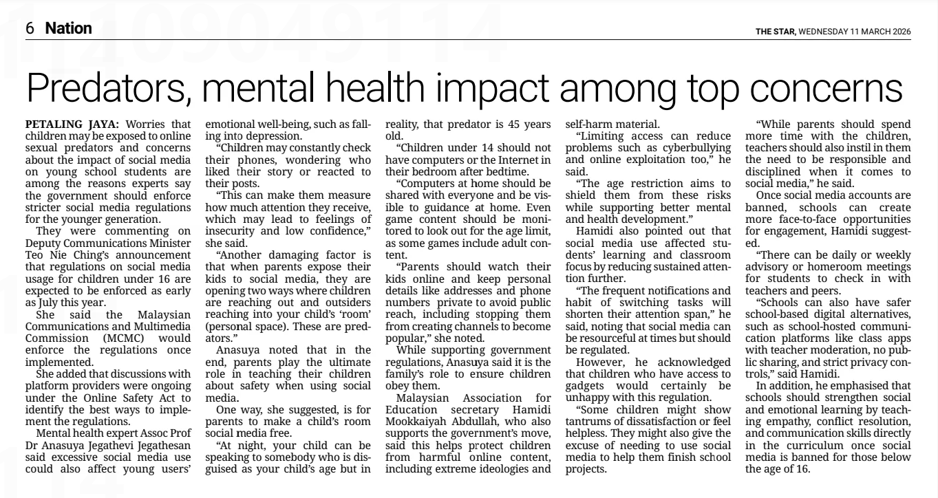 Bernama (2026) Predators, mental health impact among top concerns. The Star. |