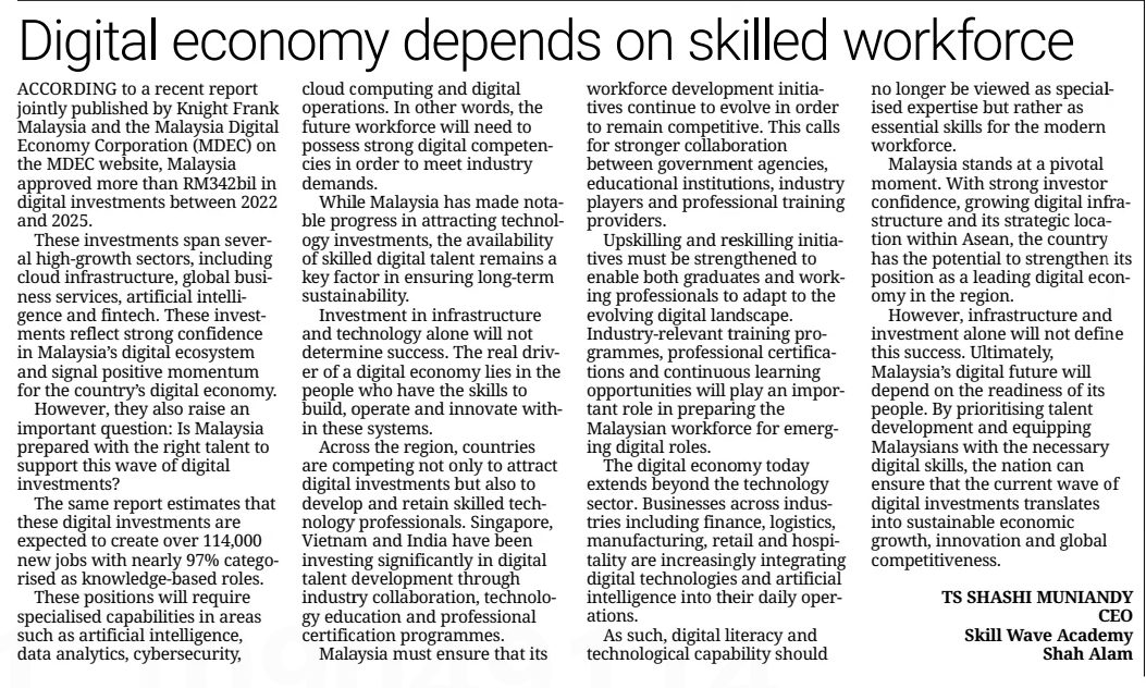Ts Shashi Muniandy (2026) Digital economy depends on skilled workforce. The Star. |