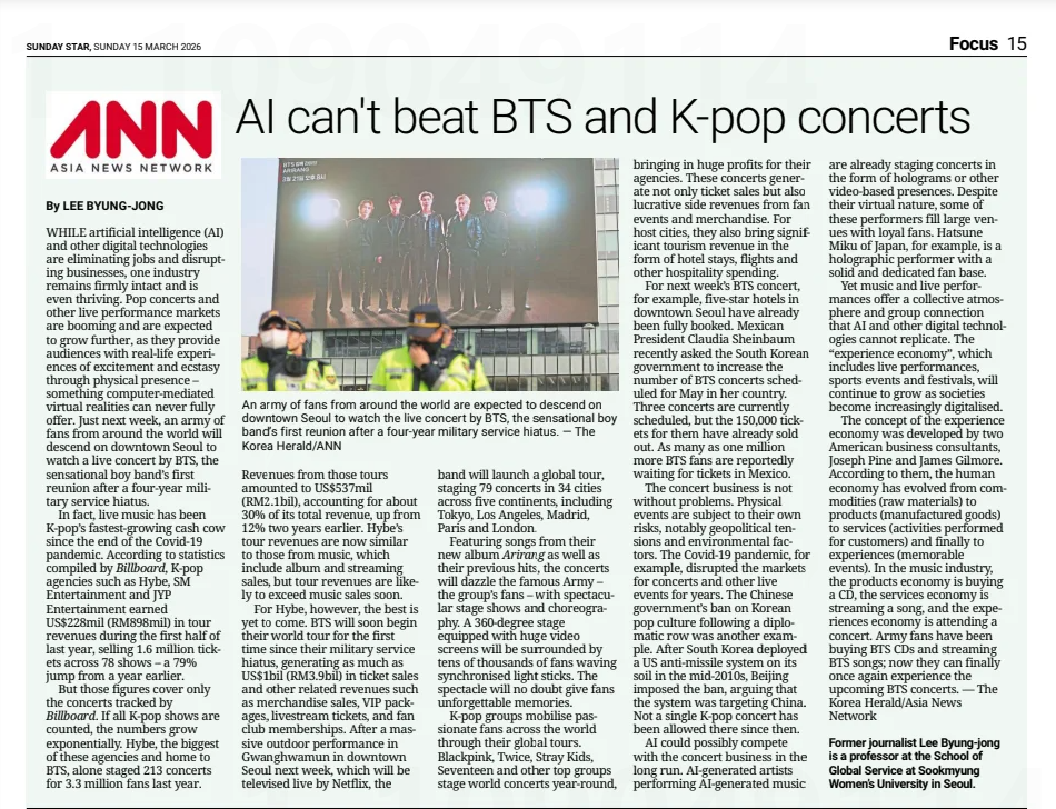 Lee, Byung Jong (2026) AI cant beat BTS and K-pop concerts. The Star. |