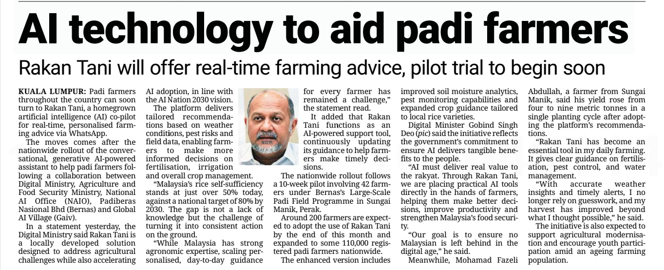 Bernama (2026) AI technology to aid padi farmers. The Star. |