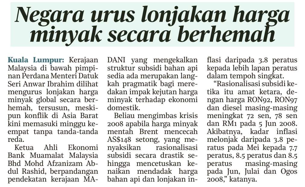 Bernama (2026) Negara Urus Lonjakan Harga Minyak Secara Berhemah. Metro. |