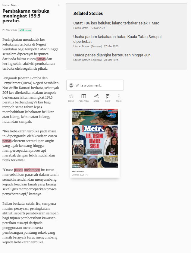 Bernama (2026) Pembakaran Terbuka Meningkat 159.5 Peratus. Harian Metro. |