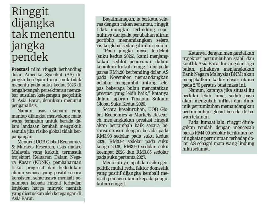 Mahanum Abdul Aziz (2026) Ringgit Dijangka Tak Menentu Jangka Pendek. Berita Harian. |