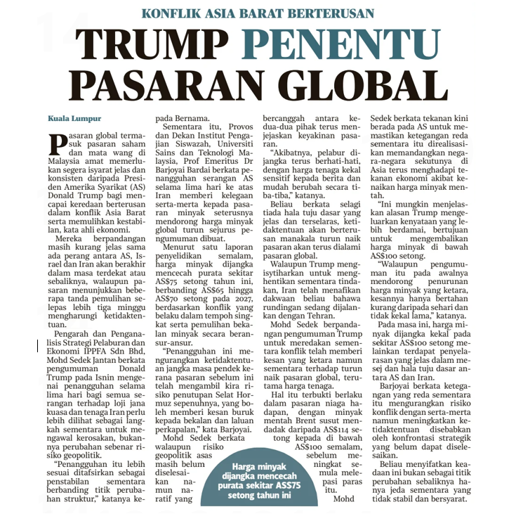 Bernama (2026) TRUMP Penentu Pasaran Global. Harian Metro. |