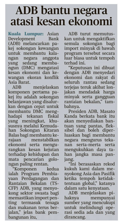 Bernama (2026) ADB Bantu Negara Atasi Kesan Ekonomi. Harian Metro. |