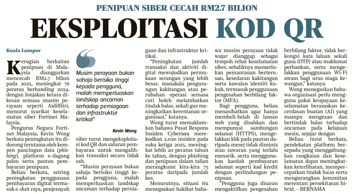 Bernama (2026) Penipuan Siber Cecah RM2.7 Bilion Eksploitasi Kod QR. Harian Metro. |